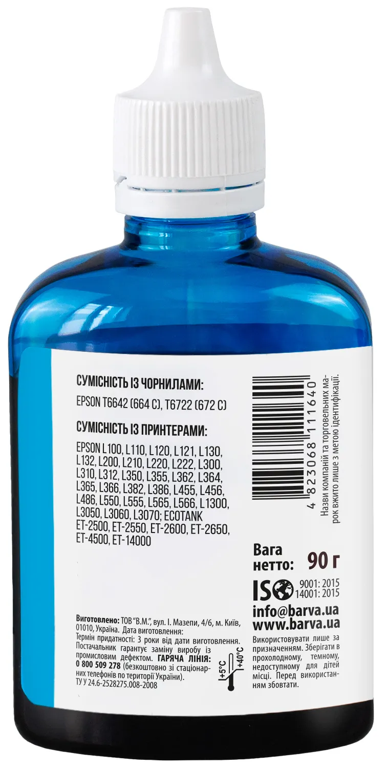 Чорнило сумісне для Epson 664 C спеціальне 90 г, водорозчинне, блакитне Barva (L100-400) опис:
