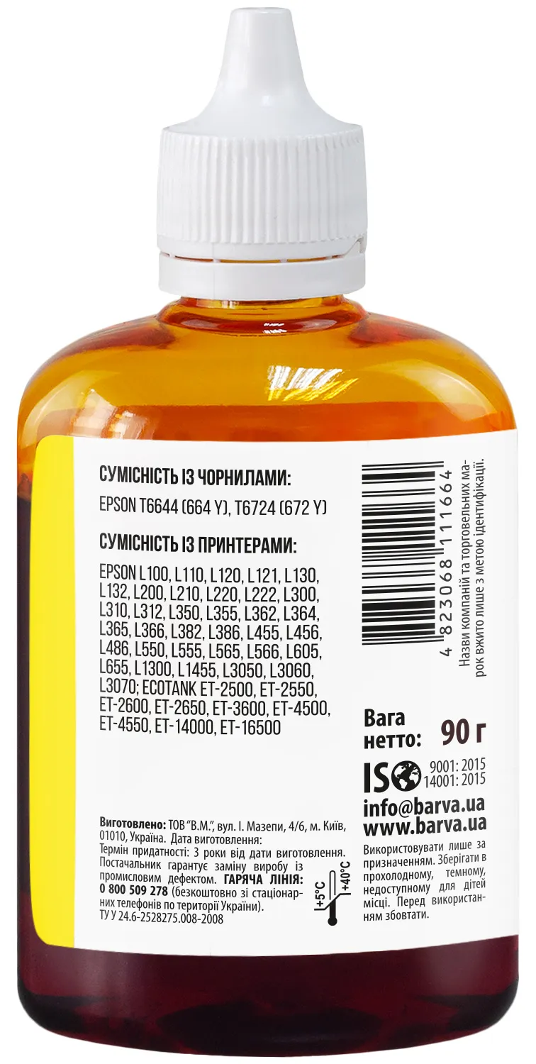 Чорнило сумісне для Epson 664 Y спеціальне 90 г, водорозчинне, жовте Barva (L100-404) опис: