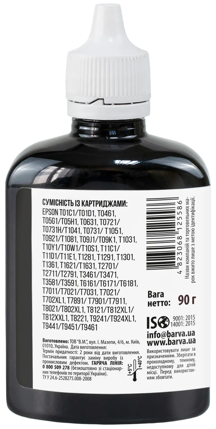 Чорнило сумісне для Epson T0731/T0921/T1291/T1301 спеціальне 90 г, пігментне, чорне Barva (E130-527) опис: