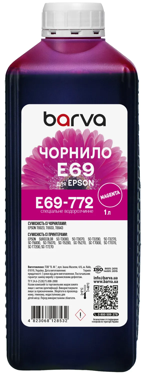 Чорнила E69-772 Barva мають офіційну гарантію від виробника – ТОВ "В.М.".