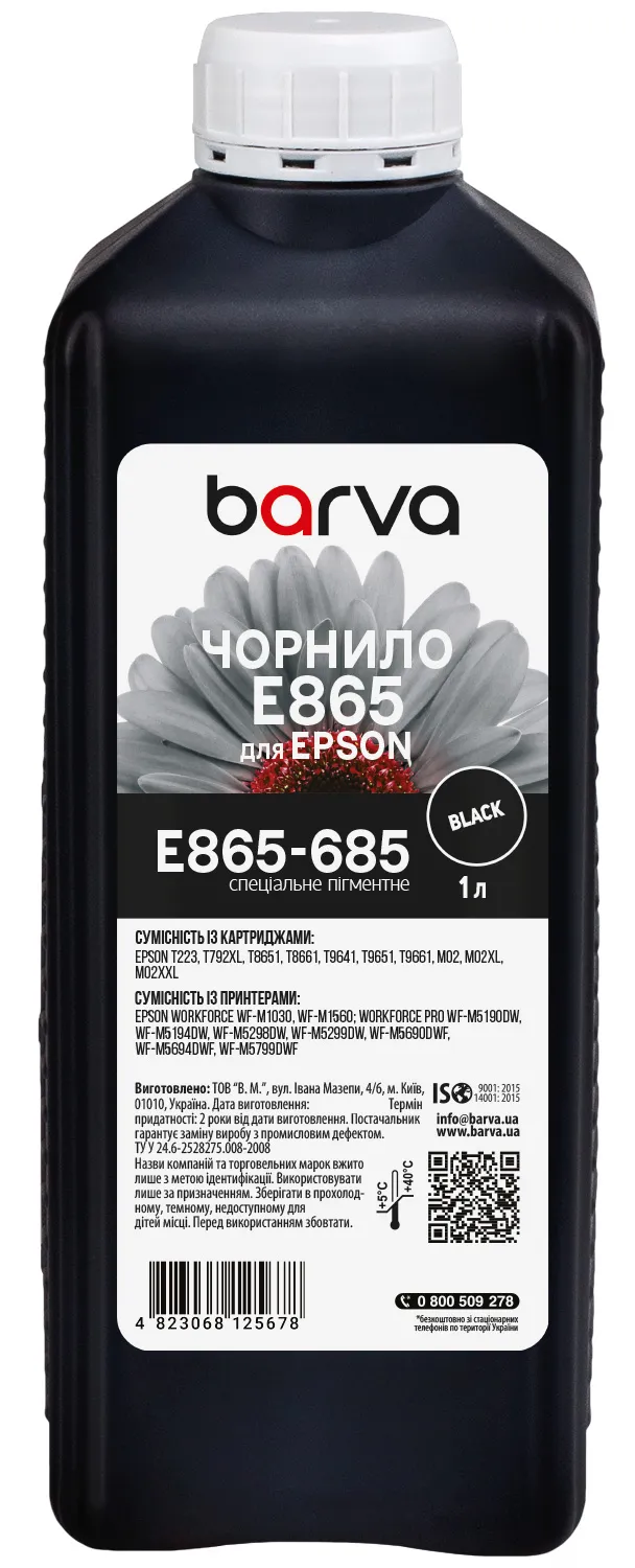 Чорнило для Epson T8651/T9651 BK спеціальне 1 л, пігментне, чорне Barva (E865-685) опис: