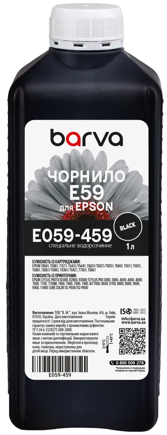Чорнило для Epson T0591/T6031/T1571 спеціальне 1 л, водорозчинне, фото-чорне Barva (E059-459) опис: