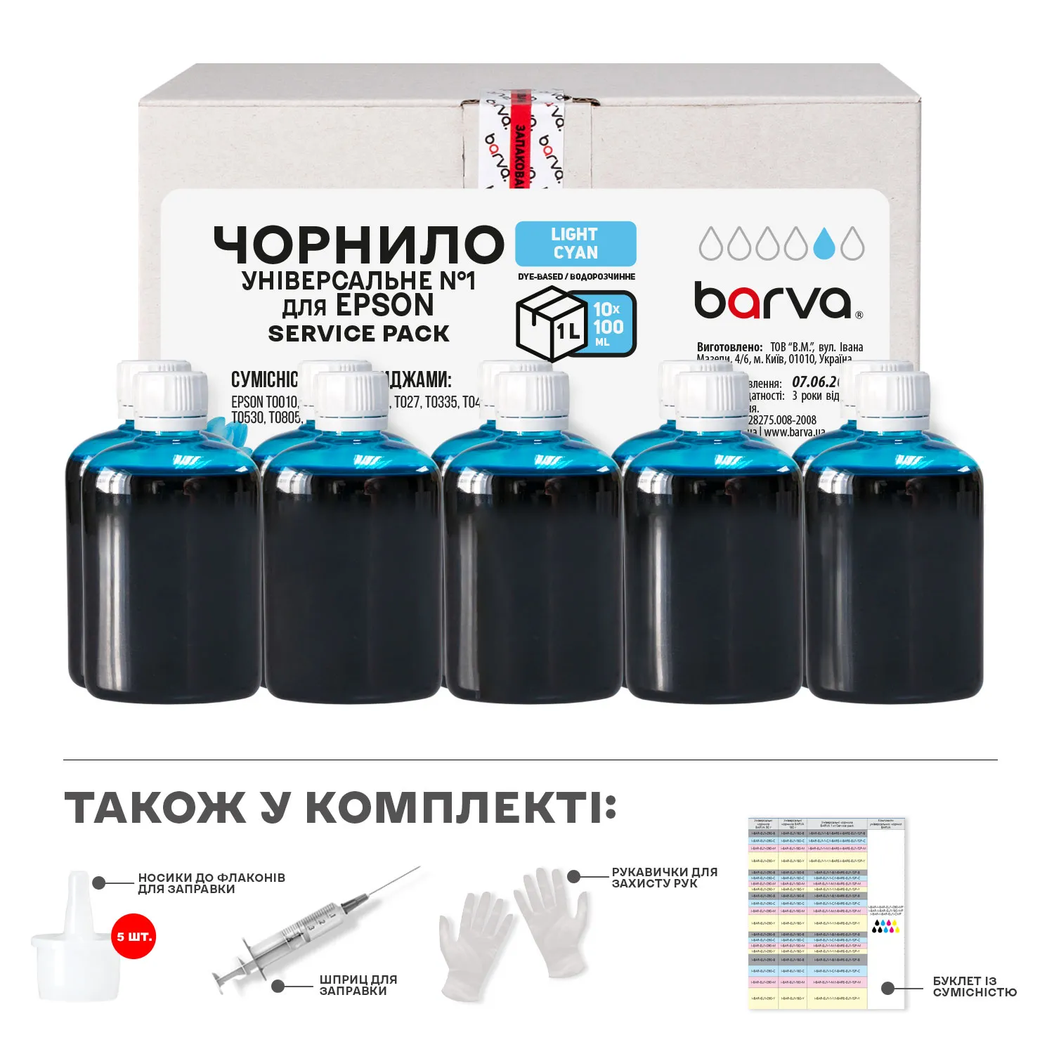 Чорнило сумісне для Epson універсальне №1 10x100 мл, водорозчинне, світло-блакитне Service Pack Barva (EU1-1SP-LC) опис: