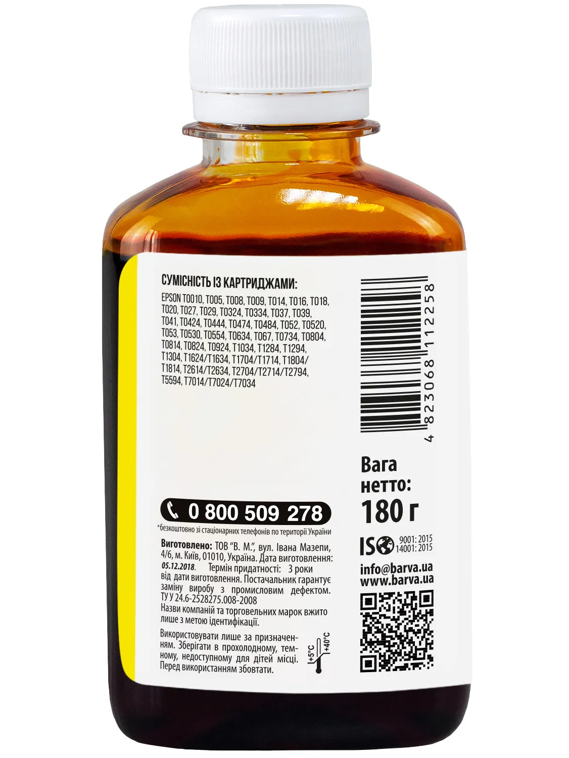 Чорнило сумісне для Epson універсальне №1 180 г, водорозчинне, жовте Barva (EU1-456) опис: