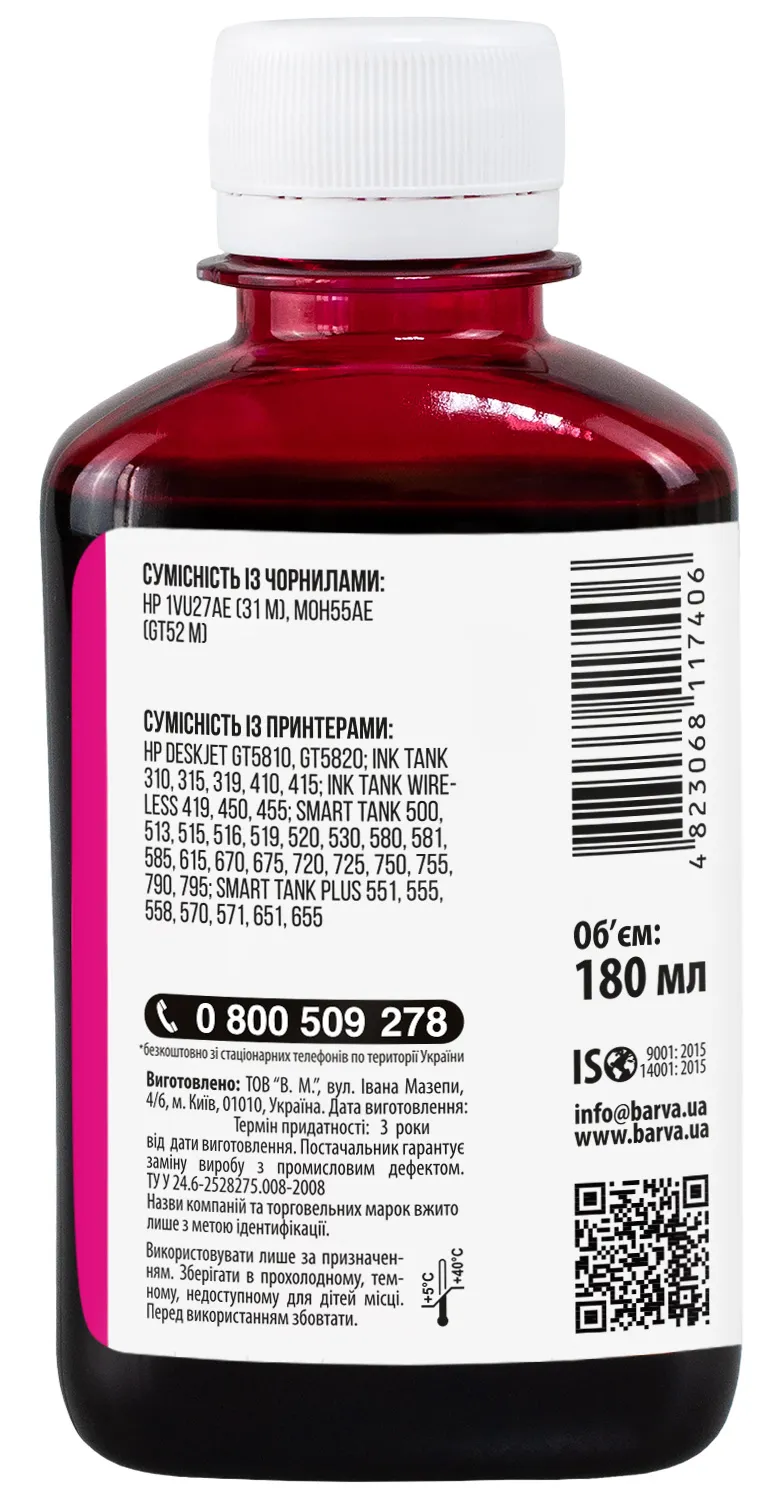 Дана фарба для принтера HP Barva має фасовку – 180 мл: