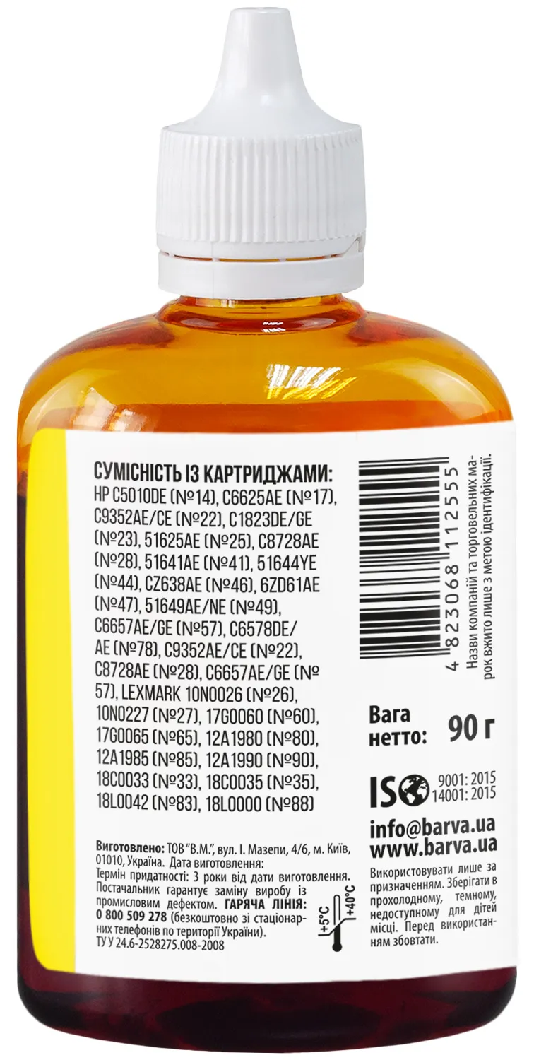 При виборі чорнила для принтерів Вам також необхідно звернути увагу на колір картриджа, який плануєте заправляти. Дані чорнила Barva мають колір – yellow (жовтий).