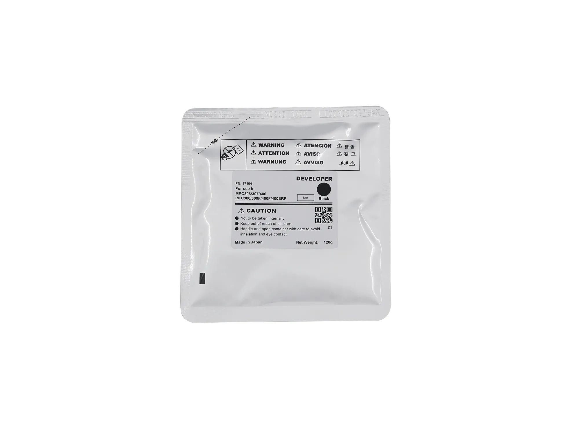 Девелопер використовується в деяких моделях друкуючих пристроїв, які мають двокомпонентний вид блоку проявки. За допомогою девелопера відбувається перенос тонеру до фотобарабану. Девелопер Ricoh MPC306, 120г, 120K чорний CET (CET171041) може бути використаний в пристроях торговельної марки Ricoh, вказаних у сумісності.