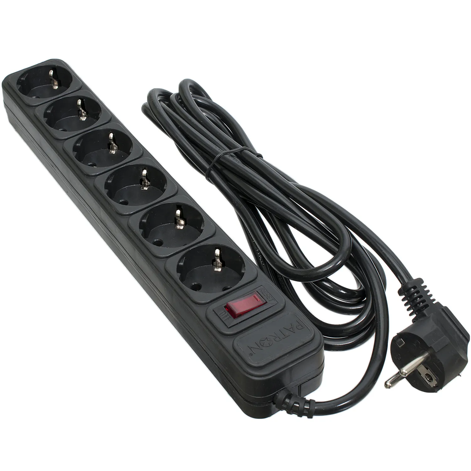 Фільтр мережевий 6 розеток, 3 м, чорний, 3*1мм2 Patron (SP-1063)