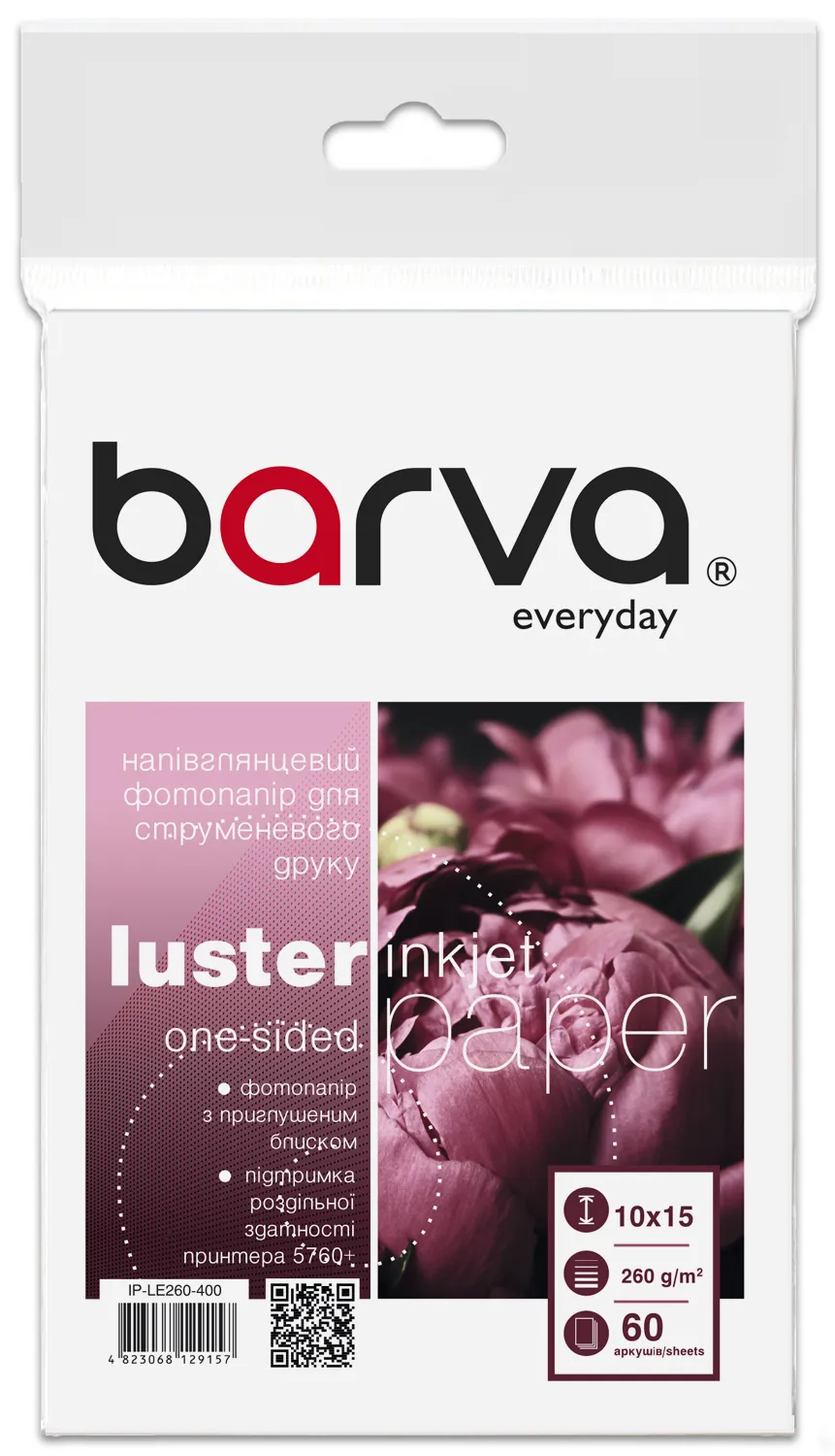 Фотопапір напівглянцевий 260 г/м2, 10x15 см, 60 арк Everyday Barva (IP-LE260-400) опис