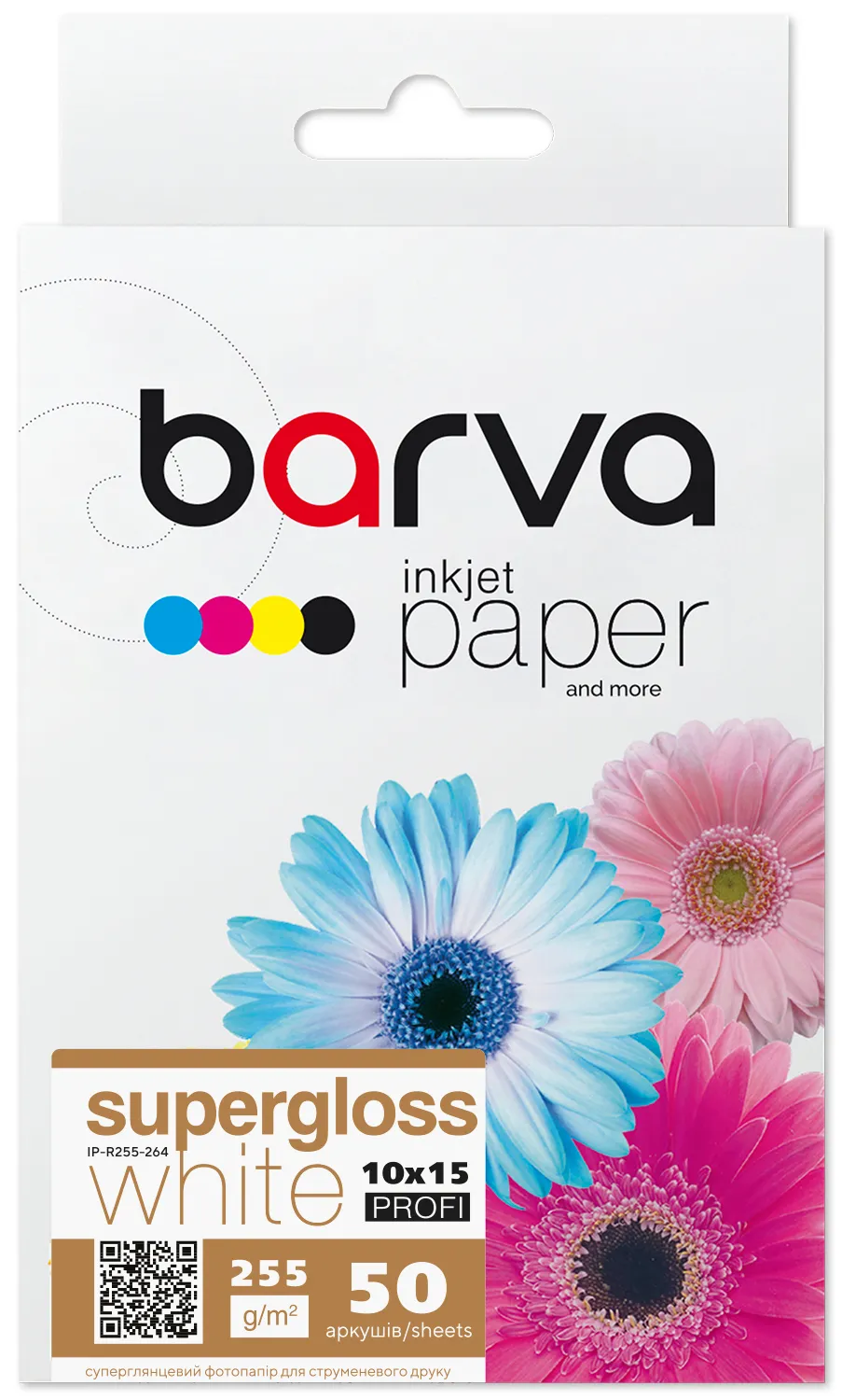 Фотопапір білий суперглянець 255 г/м2, 10x15 см, 50 арк Profi Barva (IP-R255-264) опис