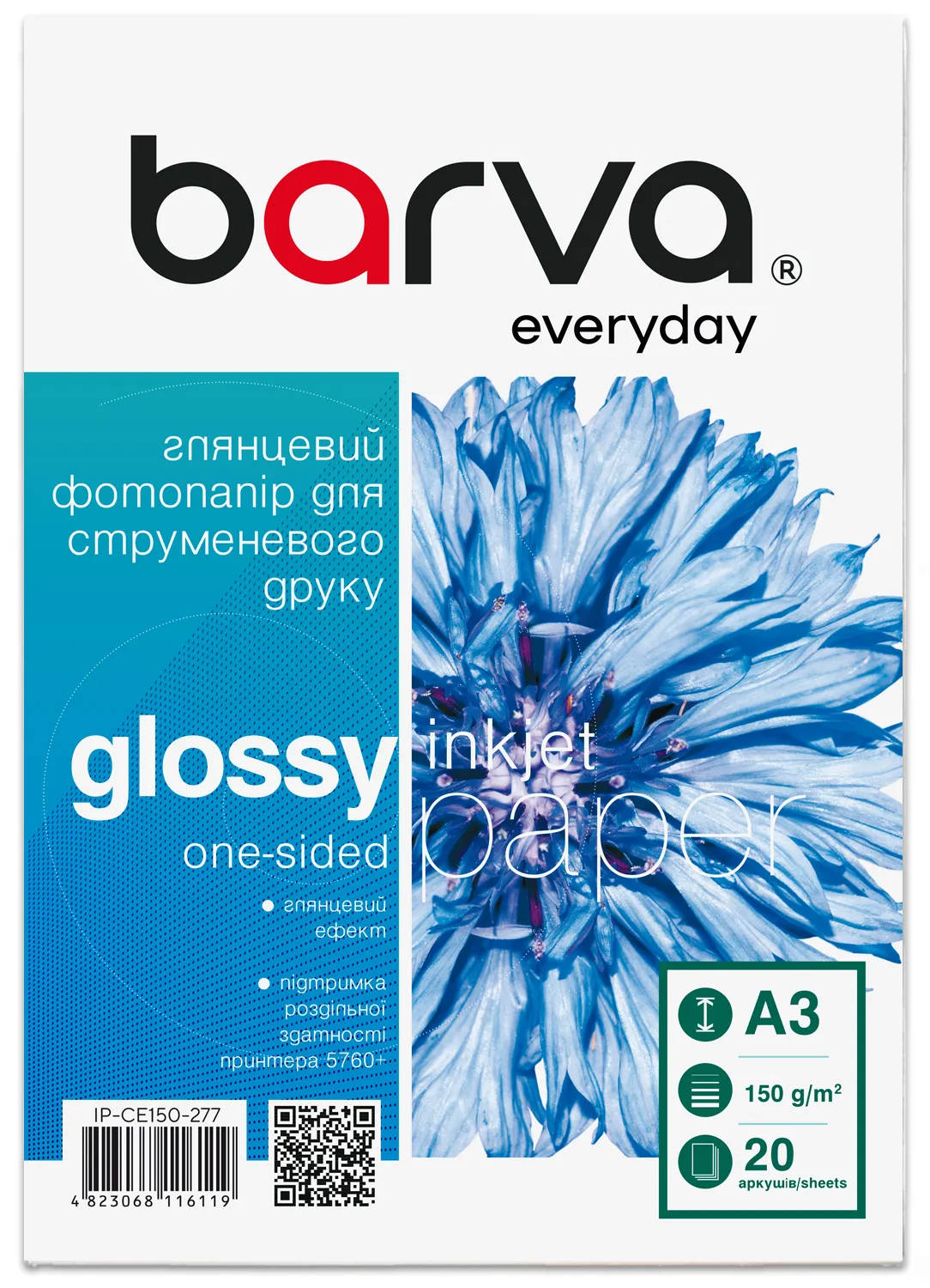 Фотопапір глянцевий 150 г/м2, A3, 20 арк Everyday Barva (IP-CE150-277) опис