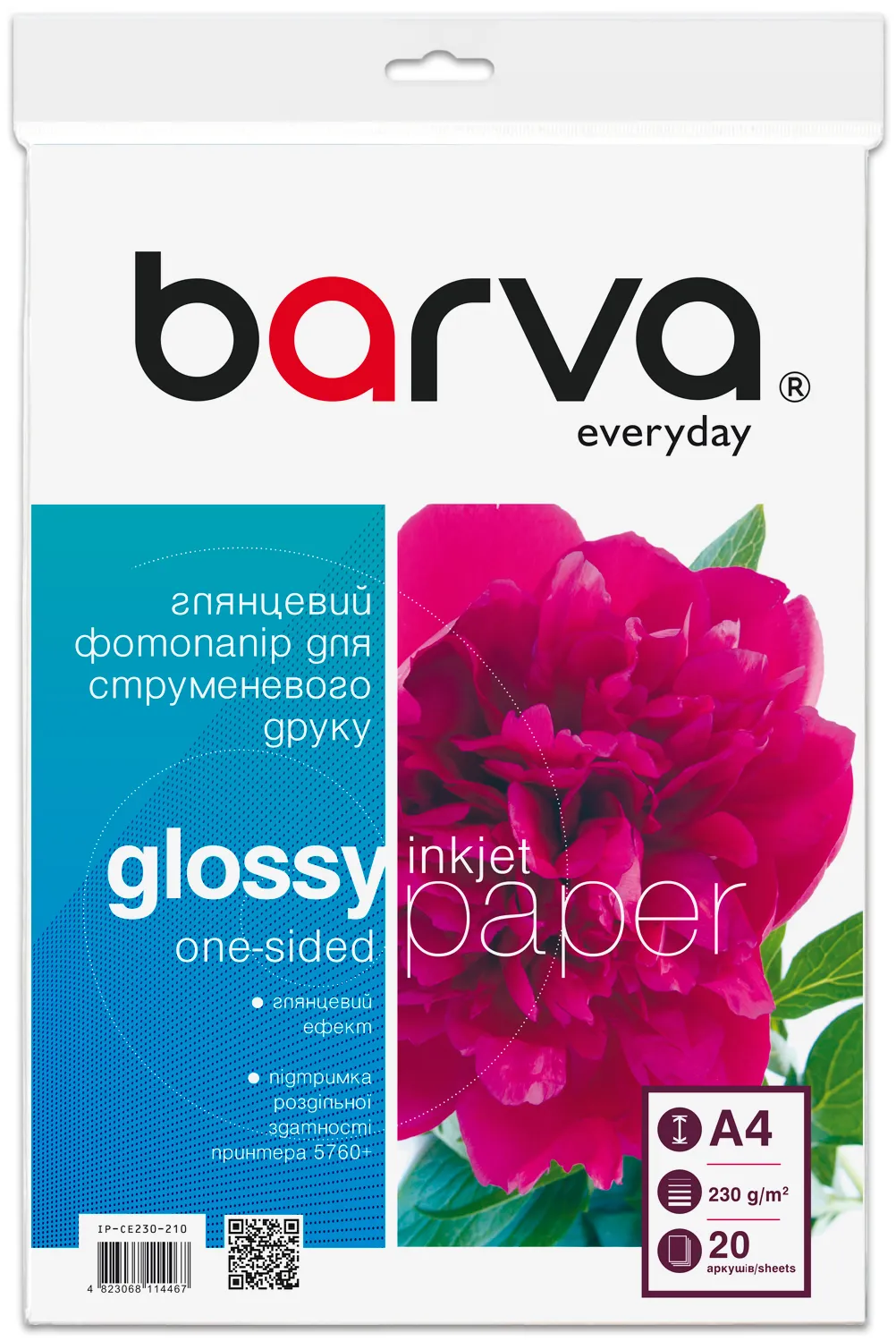 Фотопапір глянцевий 230 г/м2, A4, 20 арк Everyday Barva (IP-CE230-210) опис
