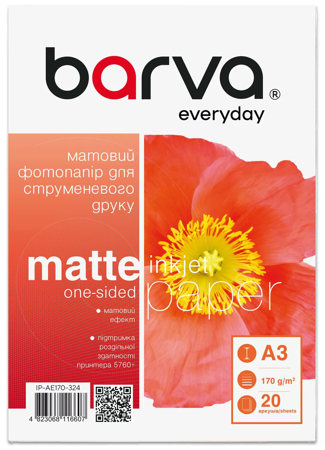 Фотопапір матовий 170 г/м2, A3, 20 арк Everyday Barva (IP-AE170-324) опис