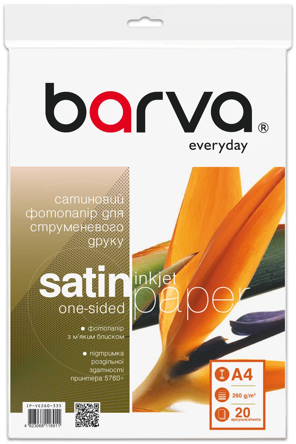 Фотопапір сатиновий 260 г/м2, A4, 20 арк Everyday Barva (IP-VE260-335) опис