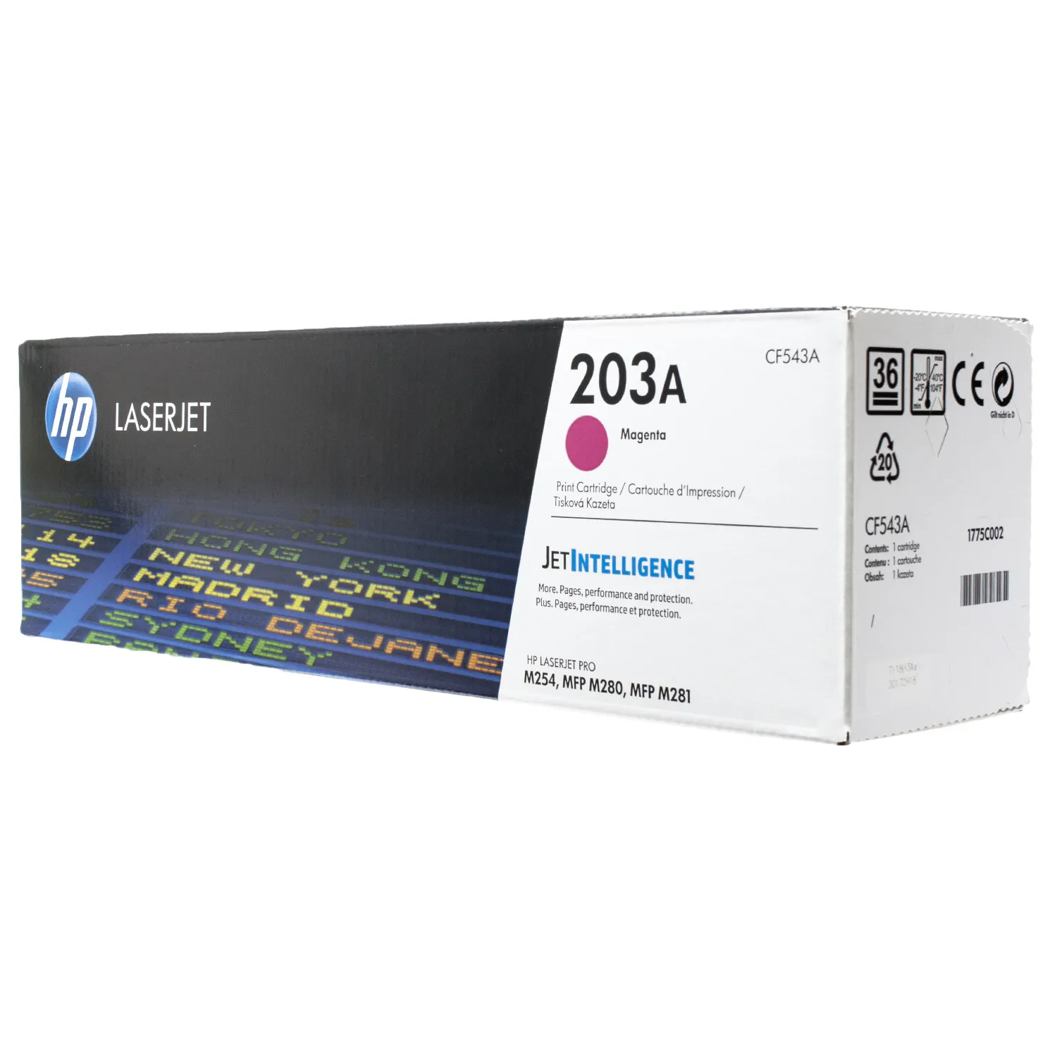 Оригінальний картридж CF543A розроблений компанією HP, яка гарантує якісний друк протягом всього ресурсу - 1300 сторінок. Картридж 203A пурпуровий HP (CF543A) відноситься до групи оригінальних витратних матеріалів, єдиним мінусом яких є висока вартість.