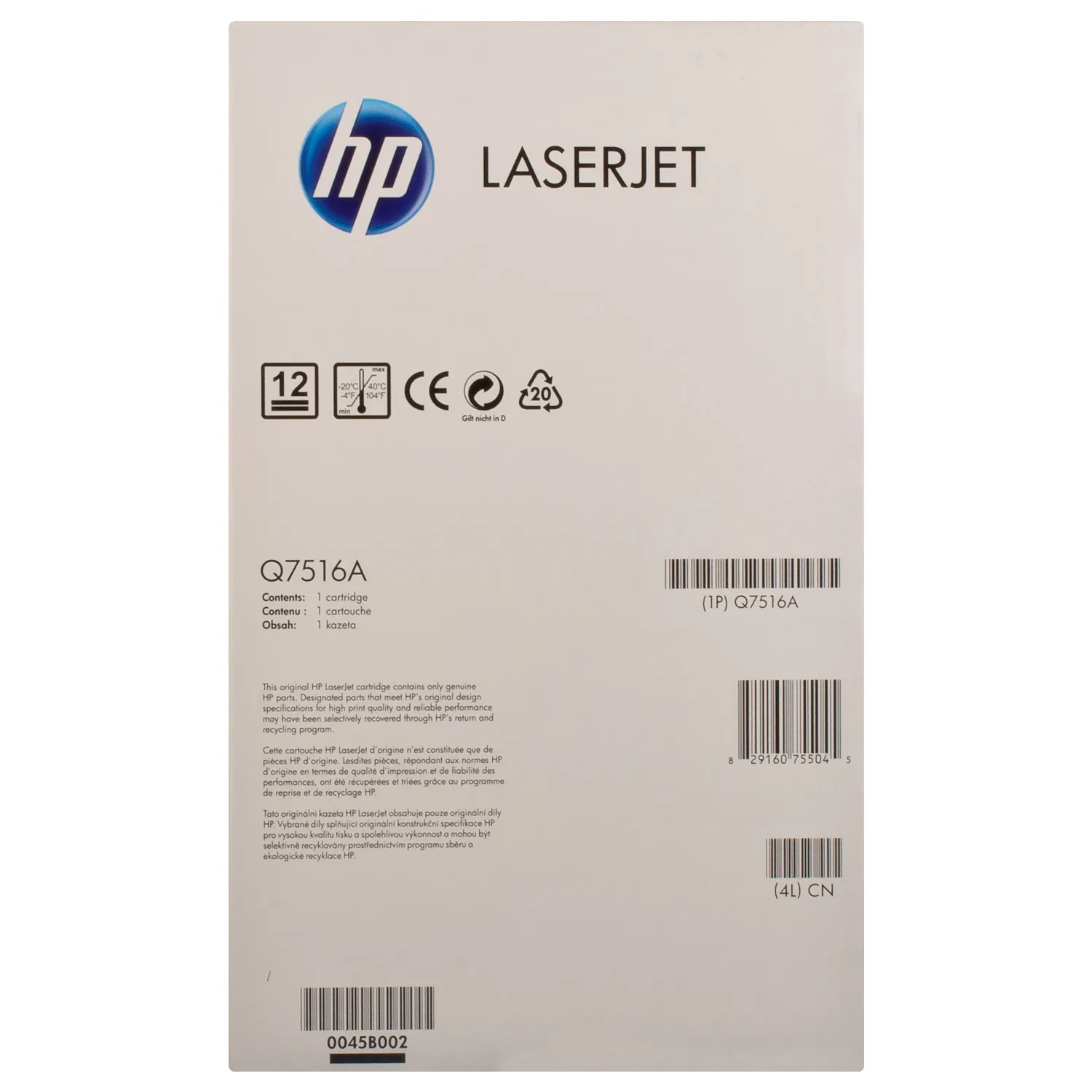 Оригінальний картридж Q7516A розроблений компанією HP, яка гарантує якісний друк протягом всього ресурсу - 12000 сторінок. Картридж 16A чорний HP (Q7516A) відноситься до групи оригінальних витратних матеріалів, єдиним мінусом яких є висока вартість.