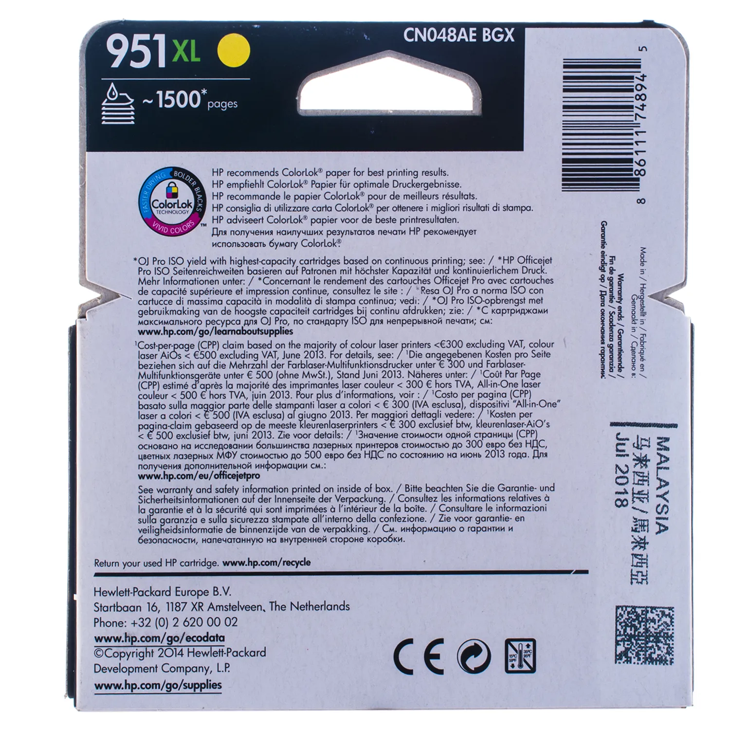 Картридж №951XL 1500 арк, жовтий HP (CN048AE) опис: