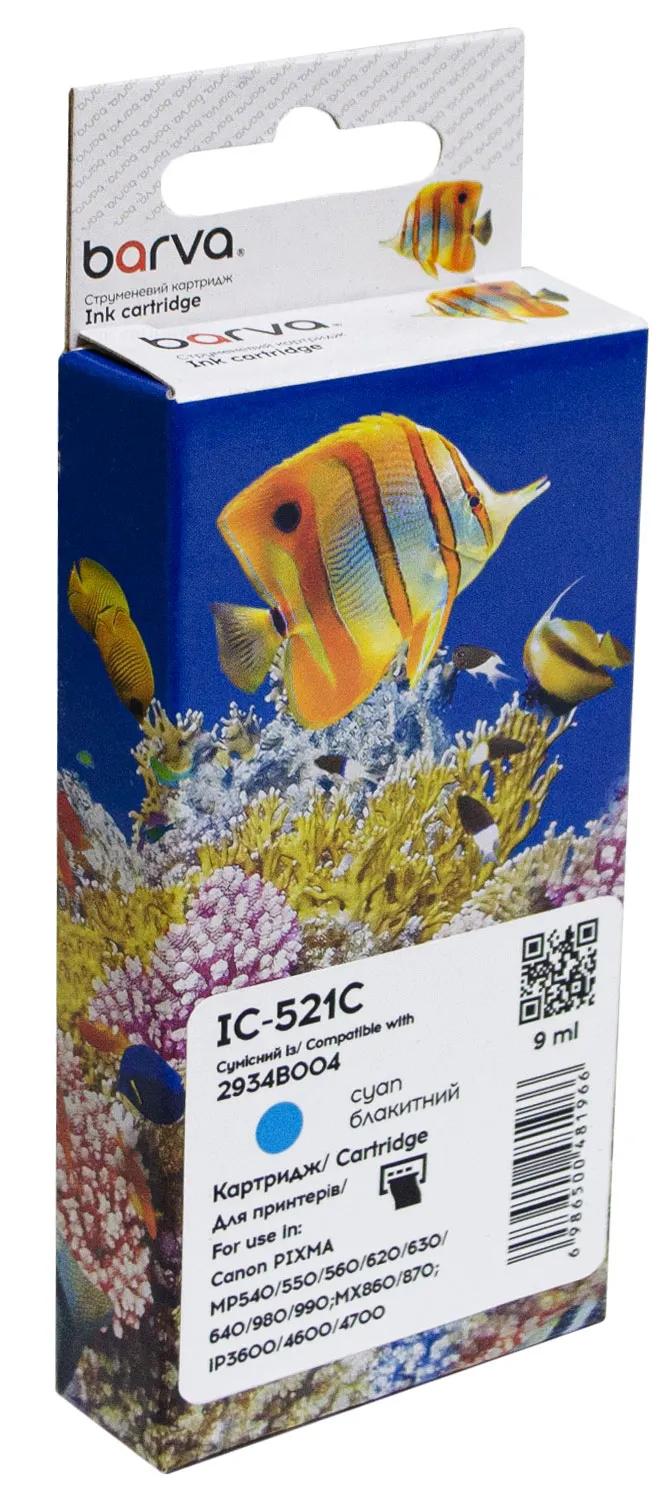 Загалом, струменевий картридж BARVA - це вигідна альтернатива оригінальним витратним матеріалам, яка поєднує в собі зручність використання, високу якість друку та надійність. Важливо! Перед тим, як замовити Картридж сумісний Canon CLI-521C (2934B004) 560 арк, блакитний Barva (IC-521C), уважно перевірте його сумісність із вашим пристроєм друку.