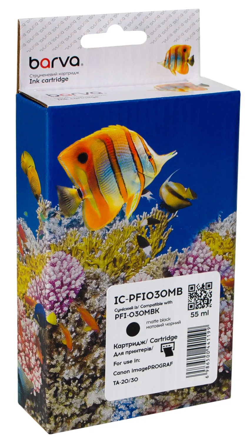 Картридж сумісний Canon PFI-030MBK (3488C001) 55 мл, матовий чорний Barva (IC-PFI030MB) підходить для друку: