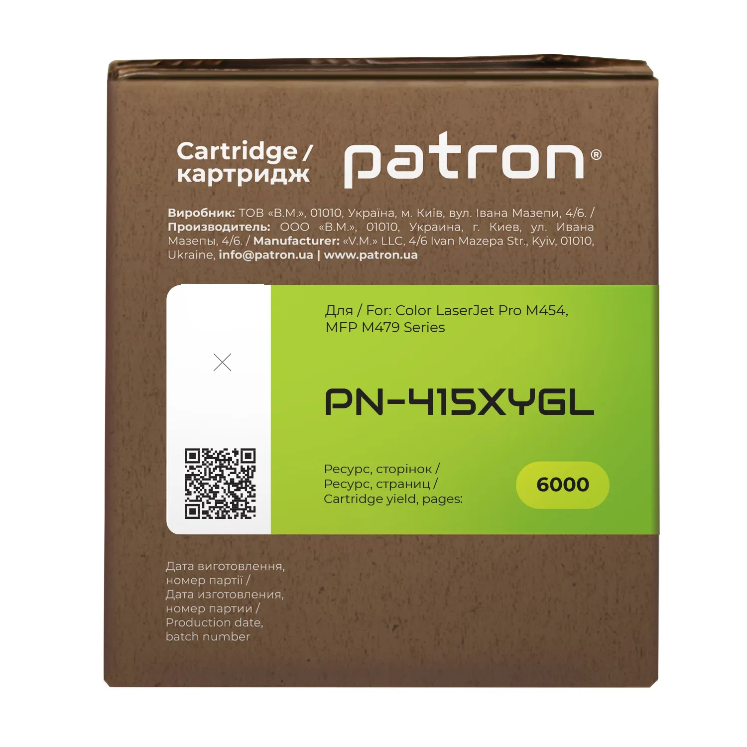 Ми потурбувалися про те, щоб упаковка картриджа була не лише екологічною, функціональною, мала мінімально можливі фізичні розміри, але і містила усю необхідну інформацію. На зеленій етикетці знаходиться інформація про картридж, його сумісність з друкувальними пристроями, номер партії, дата виготовлення, контакти виробника, а також номер телефону безкоштовної гарячої лінії для українських споживачів.