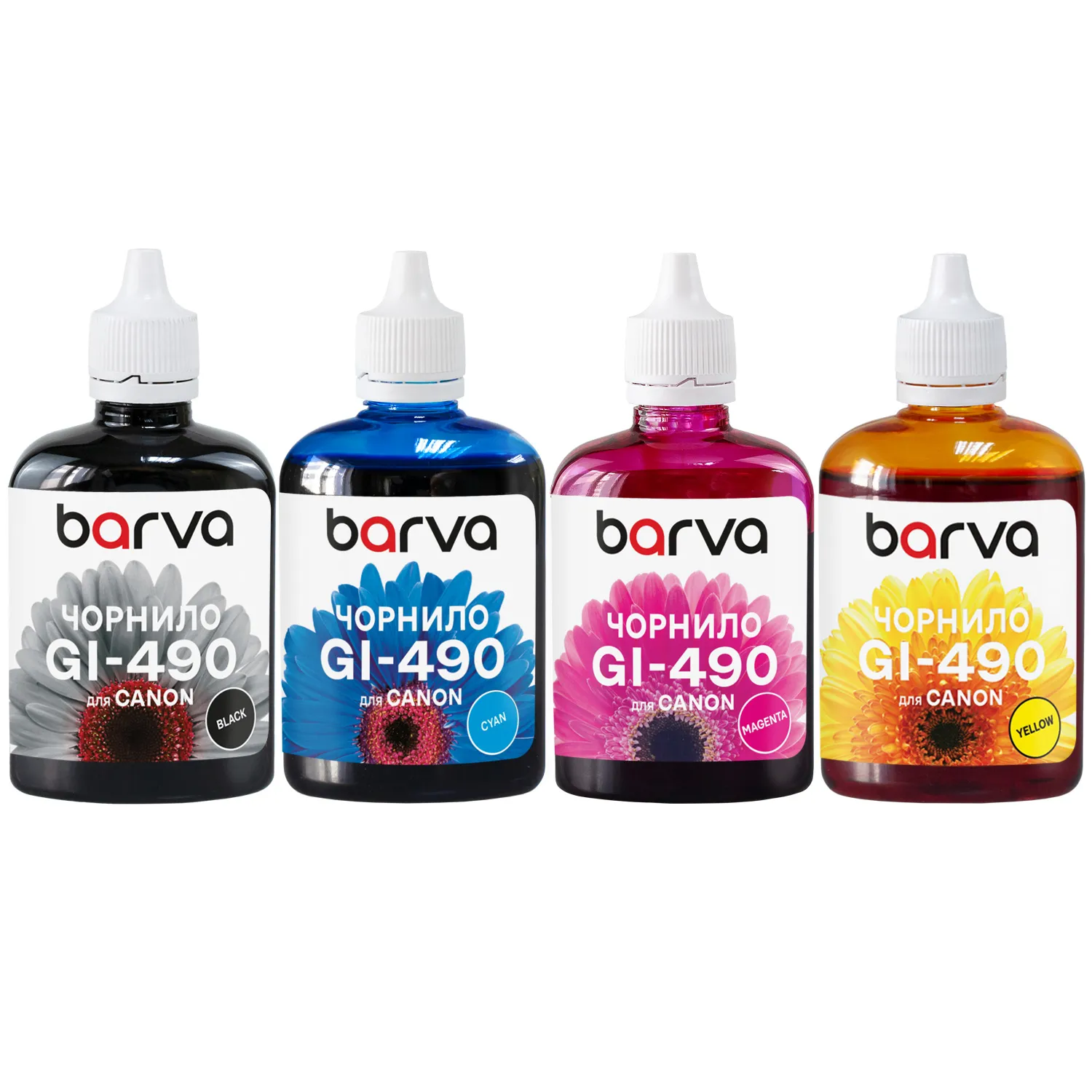 Ви можете купити Комплект чорнил для Canon GI-490 спеціальні 4x90 г, пігментне/водорозчинні, BK/C/M/Y Barva (CG490-090-MP) в нашому інтернет-магазині з доставкою по Києву та всій Україні.