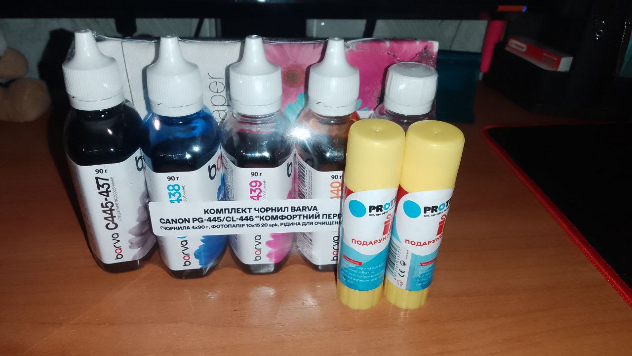 Набір «Комфортний перехід» для Canon PG-445/CL-446 – це дивовижне рішення для тих, хто прагне бездоганного друку. Він включає 4 флакони спеціальних чорнил для принтера по 90 г кожен, фотопапір формату 10x15 на 20 аркушів і 90 г рідини для очищення Barva. Комплект стане вашим надійним помічником у створенні якісних та яскравих друкованих матеріалів.