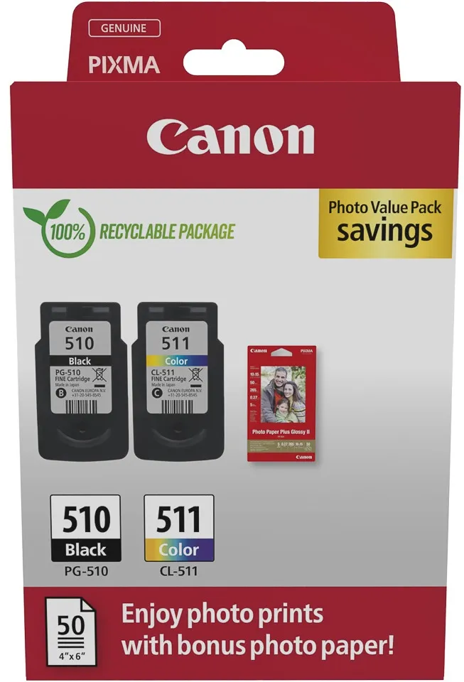 Комплект картридж PG-510 чорний + картридж CL-511 кольоровий + папір 50 л Canon (2970B017)