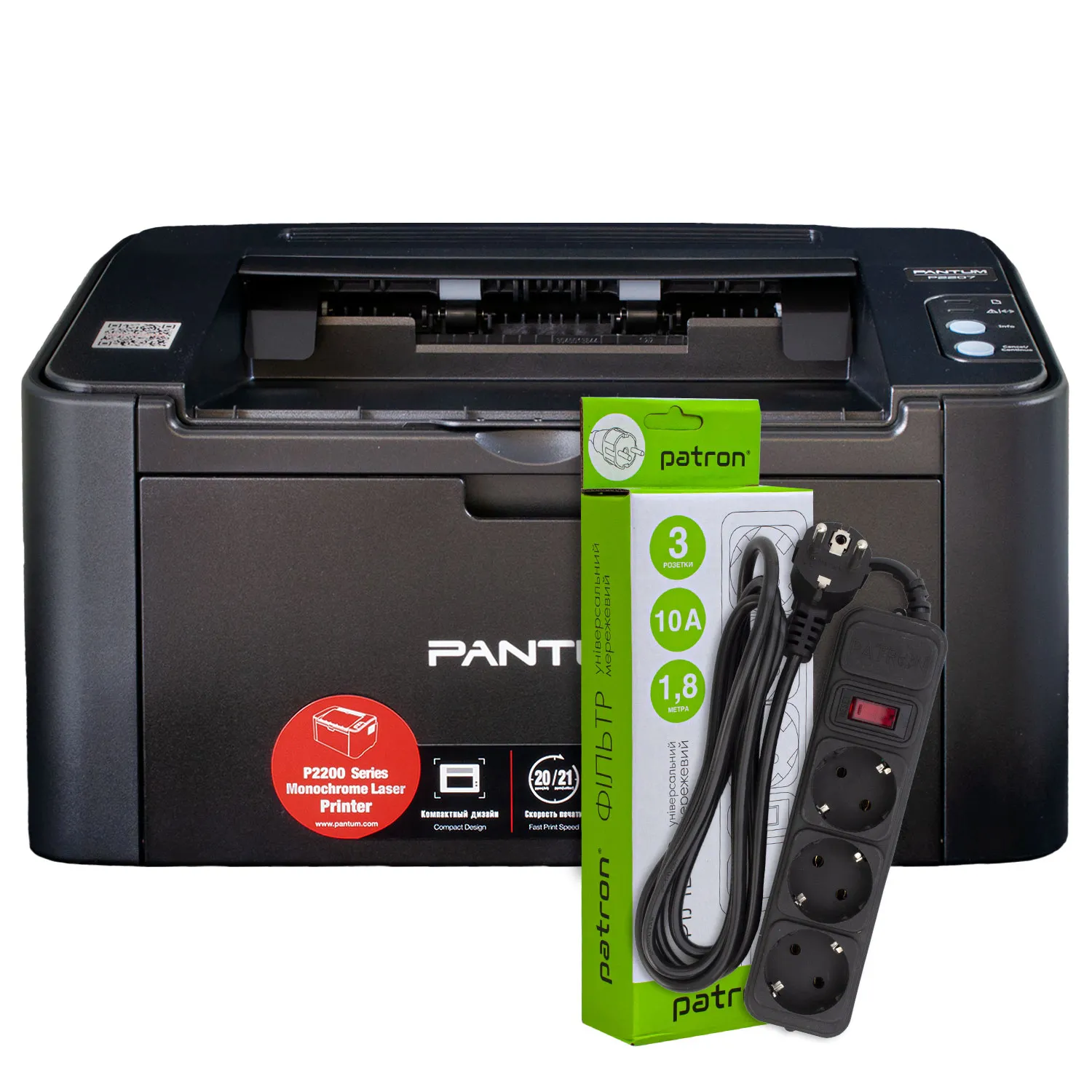 Принтер лазерний P2207 A4 Pantum (P2207) + Фільтр мережевий 3 розетки Patron (SP-1033)