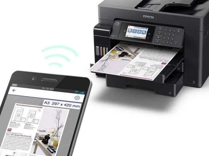 Особенность всех устройств серии «Фабрика печати Epson» – это печать без картриджей. Вместо картриджей в Epson L15160 использует фронтальные чернильные емкости.