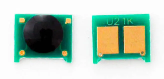 Что такое чип для картриджа? Это небольшая по размеру микросхема, в которую вшита информация о ресурсе самого картриджа, обеспечен функцией обмена данными с принтером. Проще говоря, благодаря чипу аппарат может посчитать количество отпечатанных страниц. В момент, когда счётчик страниц подошел к концу, вы увидите предупреждение о том, что картридж закончился и его необходимо заменить, даже если в бункере картриджа остался неиспользованный тонер.