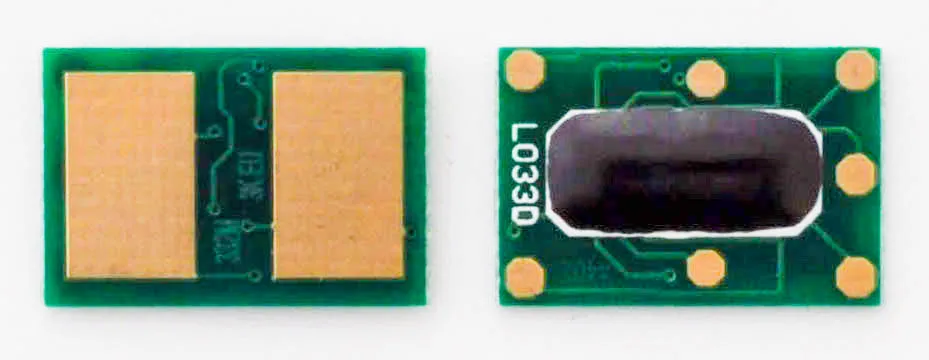Что такое чип для картриджа? Это небольшая по размеру микросхема, в которую вшита информация о ресурсе самого картриджа, обеспечен функцией обмена данными с принтером. Проще говоря, благодаря чипу аппарат может посчитать количество отпечатанных страниц. В момент, когда счётчик страниц подошел к концу, вы увидите предупреждение о том, что картридж закончился и его необходимо заменить, даже если в бункере картриджа остался неиспользованный тонер.