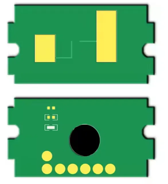 Что такое чип для картриджа? Это небольшая по размеру микросхема, в которую вшита информация о ресурсе самого картриджа, обеспечен функцией обмена данными с принтером. Проще говоря, благодаря чипу аппарат может посчитать количество отпечатанных страниц. В момент, когда счётчик страниц подошел к концу, вы увидите предупреждение о том, что картридж закончился и его необходимо заменить, даже если в бункере картриджа остался неиспользованный тонер.