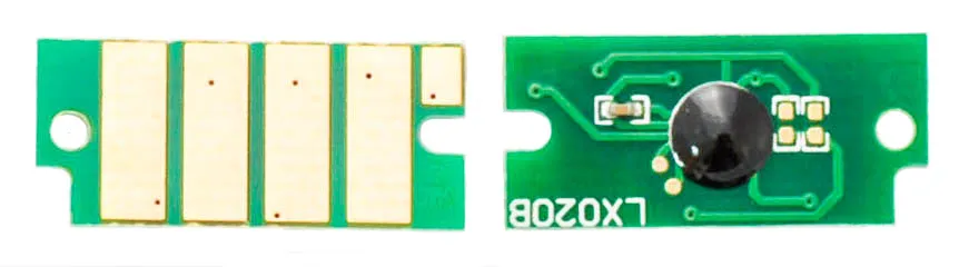 Что такое чип для картриджа? Это небольшая по размеру микросхема, в которую вшита информация о ресурсе самого картриджа, обеспечен функцией обмена данными с принтером. Проще говоря, благодаря чипу аппарат может посчитать количество отпечатанных страниц. В момент, когда счётчик страниц подошел к концу, вы увидите предупреждение о том, что картридж закончился и его необходимо заменить, даже если в бункере картриджа остался неиспользованный тонер.