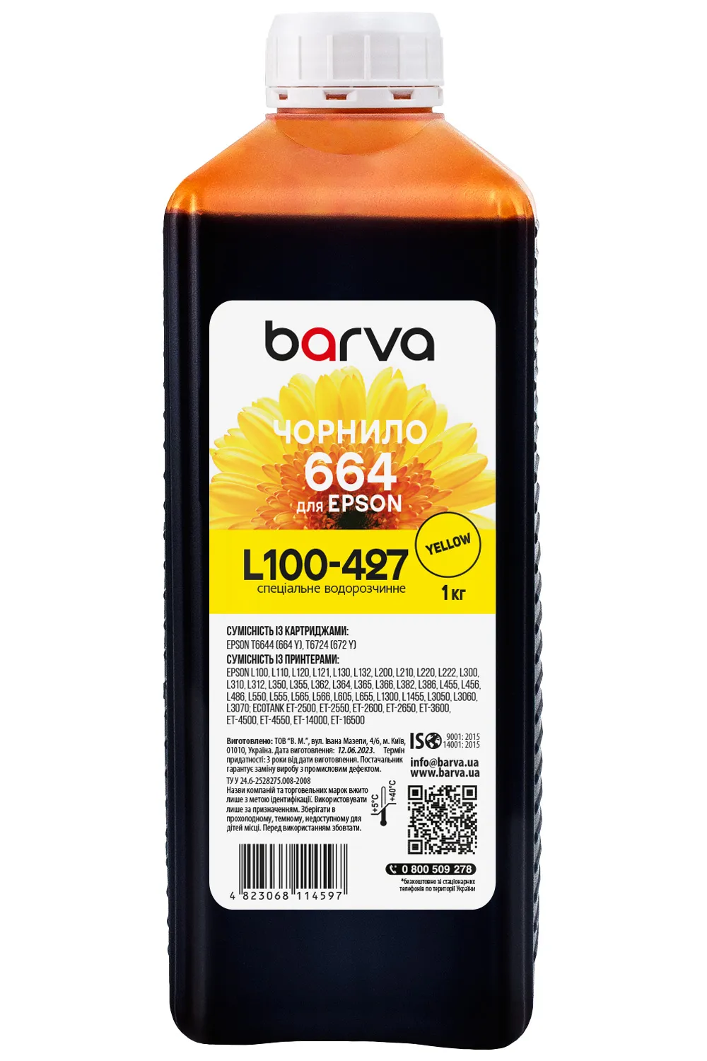 Вы можете купить Чернила совместимые для Epson 664 Y специальные 1 кг, водорастворимые, желтые Barva (L100-427) в нашем интернет-магазине с доставкой по Киеву и всей Украине.