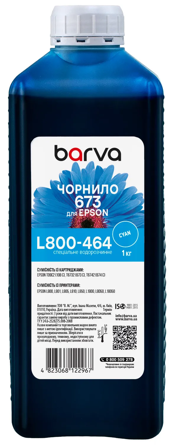 Чернила совместимые для Epson 673 C специальные 1 кг, водорастворимые, голубые Barva (L800-464) - лучший выбор на сайте patronservice.ua