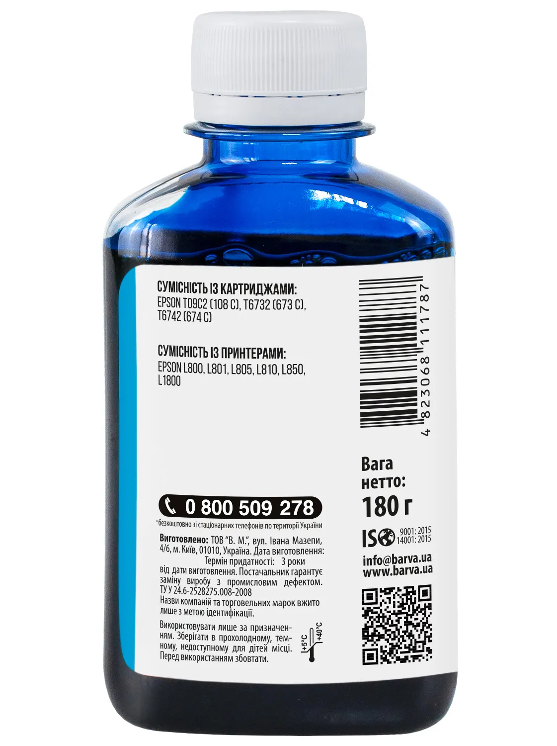 Чернила совместимые для Epson 673 C специальные 180 г, водорастворимые, голубые Barva (L800-411) - заказывайте на сайте patronservice.ua