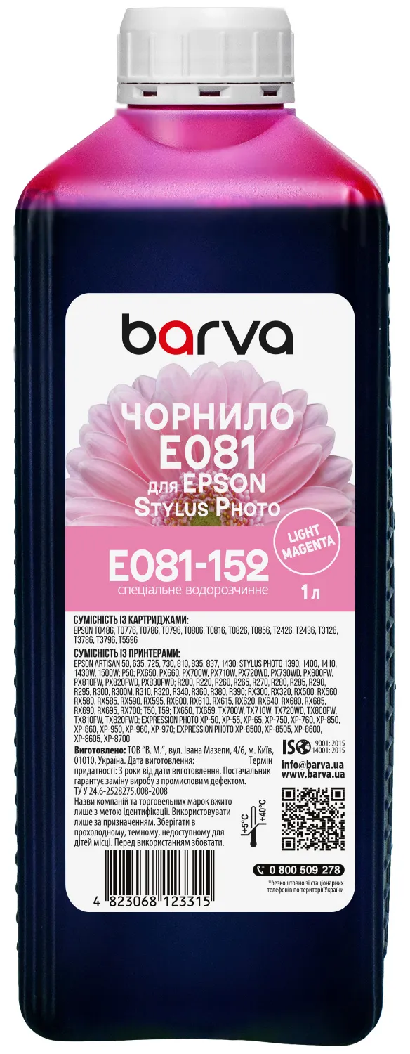 Чернила для Epson T0486/T0806/T0816 специальные 1 л, водорастворимые, светло-пурпурные Barva (E081-152) - лучший выбор на сайте patronservice.ua
