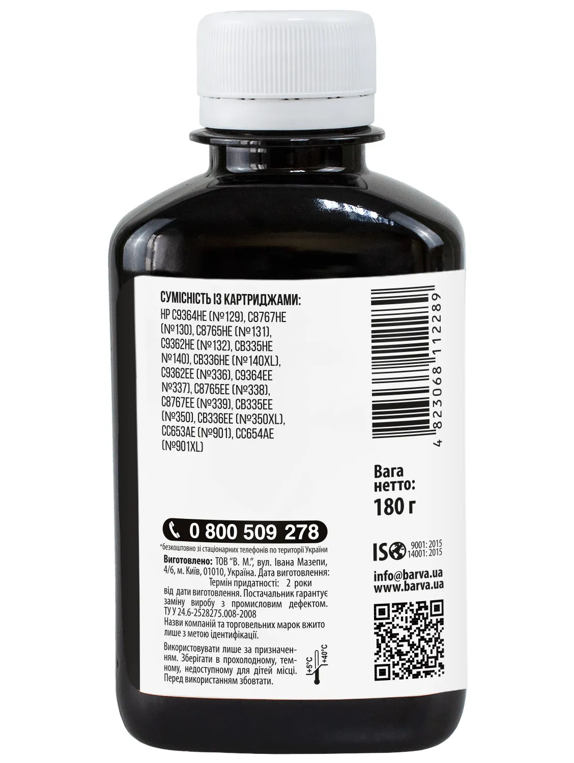 Украинская компания ООО «В.М.» занимается производством чернил под торговой маркой Barva уже много лет. На базе собственной лаборатории осуществляется как разработка новых формул, так и непрерывный контроль качества выпускаемой продукции. При производстве чернил производитель следует стандартам ISO 9001:2015 и ISO 14001:2015.