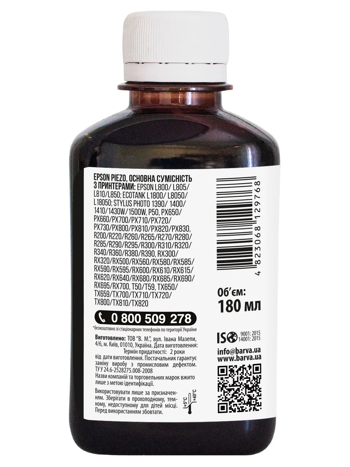 Украинская компания ООО «В.М.» производит чернила под торговой маркой Barva уже много лет. На базе собственной лаборатории происходит как разработка новых формул, так и непрерывный контроль качества выпускаемой продукции. При производстве чернил производитель следует стандартам ISO 9001:2015 и ISO 14001:2015.