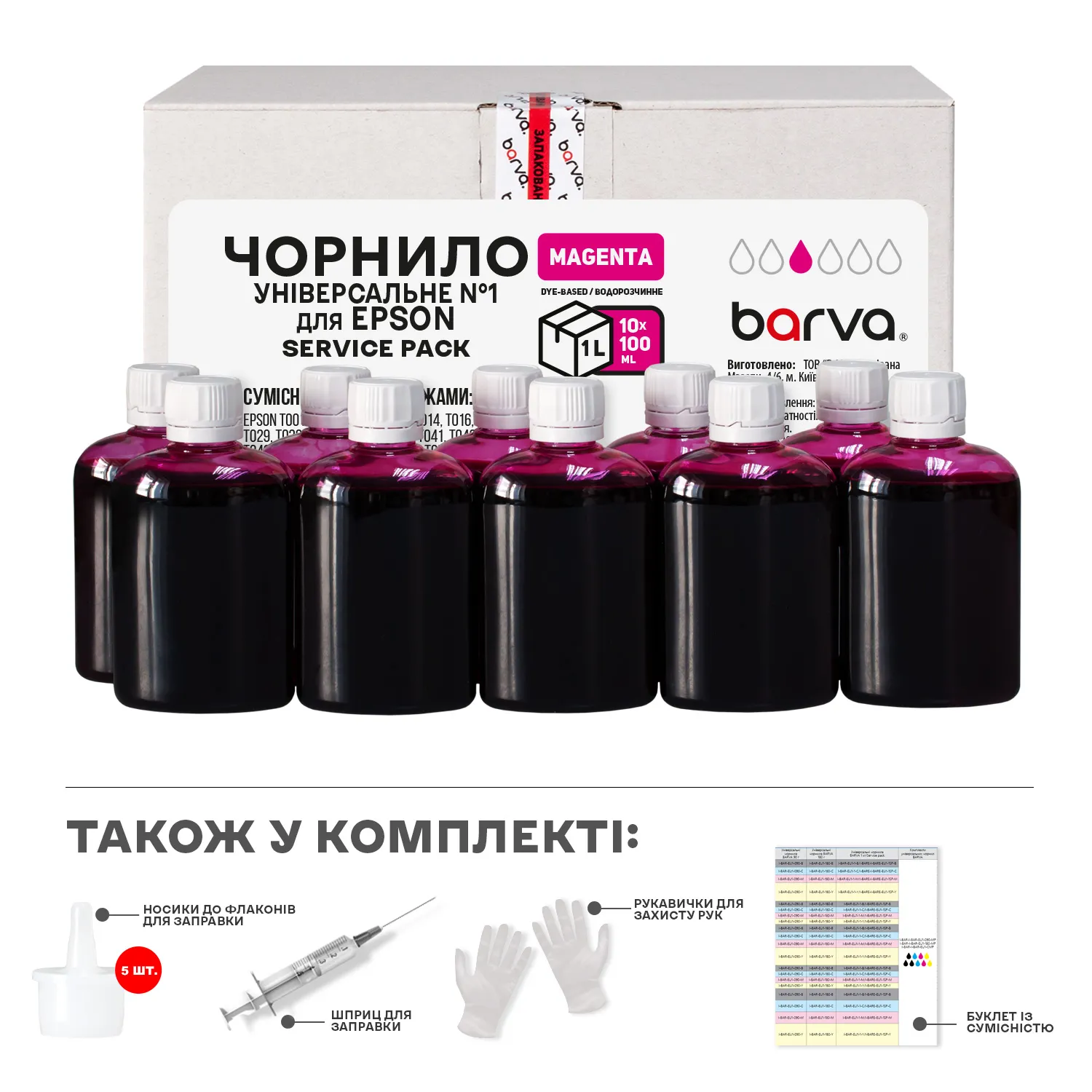 Чернила совместимые для Epson универсальные №1 10x100 мл, водорастворимые, пурпурные Service Pack Barva (EU1-1SP-M) - заказывайте на сайте patronservice.ua