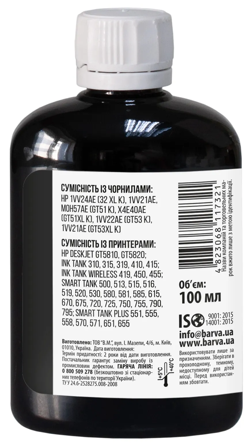 Чернила для HP GT53 K специальные 100 мл, пигментные, черные Barva (HGT53-735) - быстрая и удобная доставка