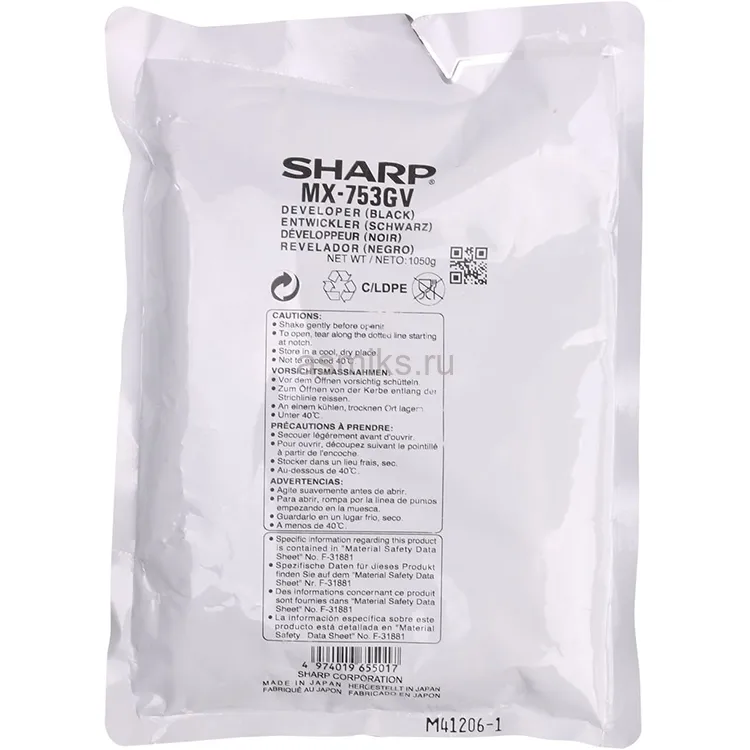 Девелопер используется в некоторых моделях печатающих устройств, которые имеют двухкомпонентный вид блока проявки. С помощью девелопера осуществляется перенос тонера к фотобарабану. Девелопер Sharp (MX753GV) подходит для устройств торговой марки Sharp, которые указаны в списке совместимости.