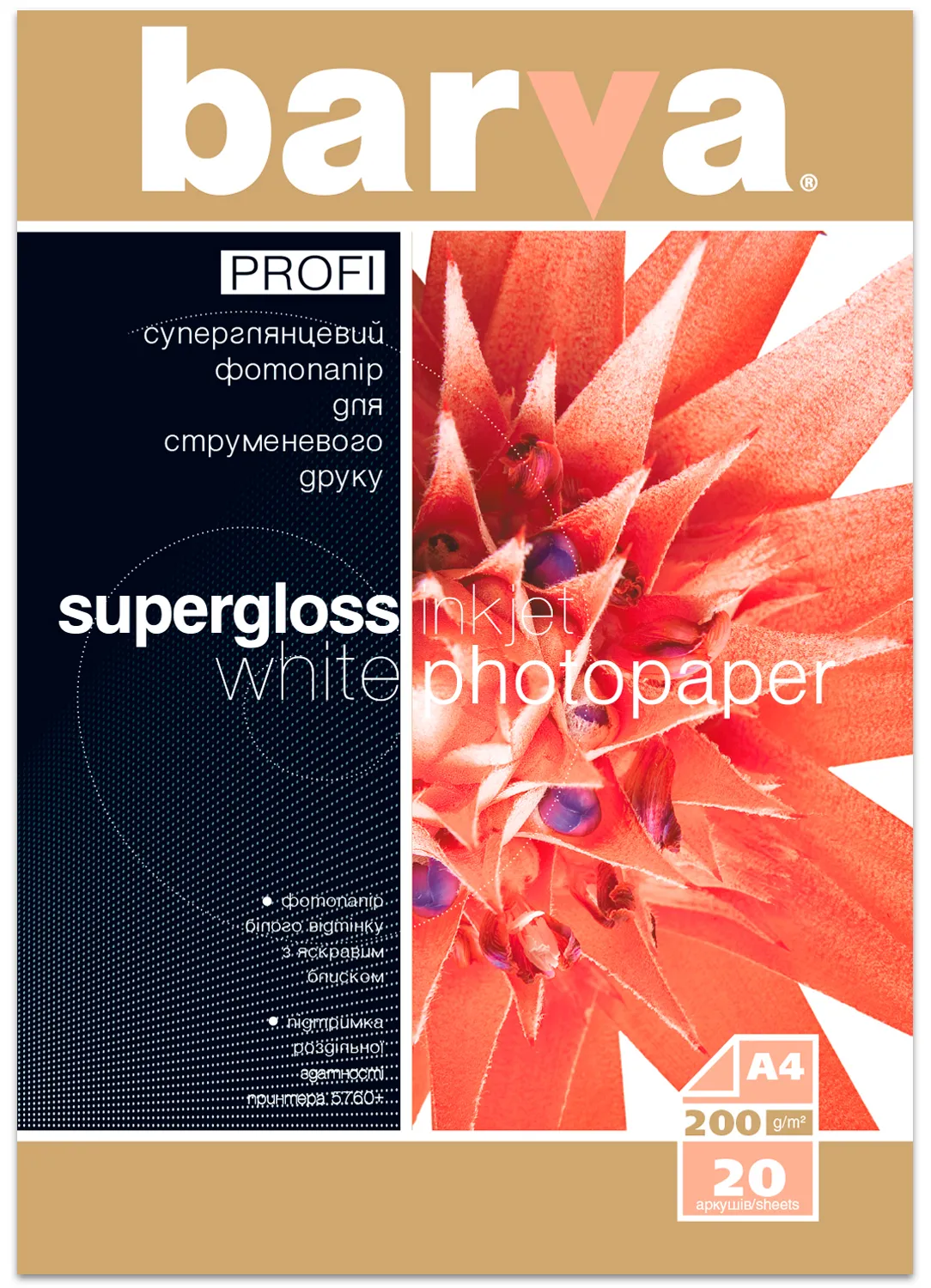 Фотобумага белый суперглянец 200 г/м2, А4, 20 л Profi Barva (IP-R200-160) - заказывайте на сайте patronservice.ua