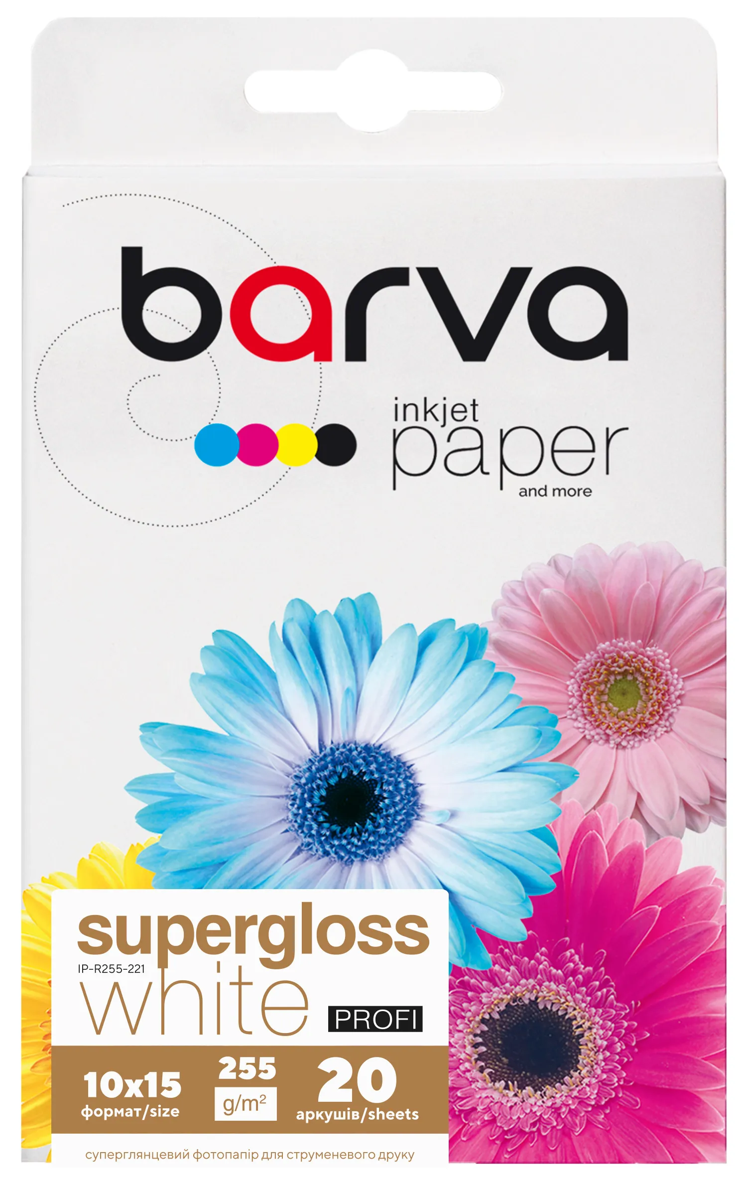 Фотобумага белый суперглянец 255 г/м2, 10x15 см, 20 л Profi Barva (IP-R255-221)