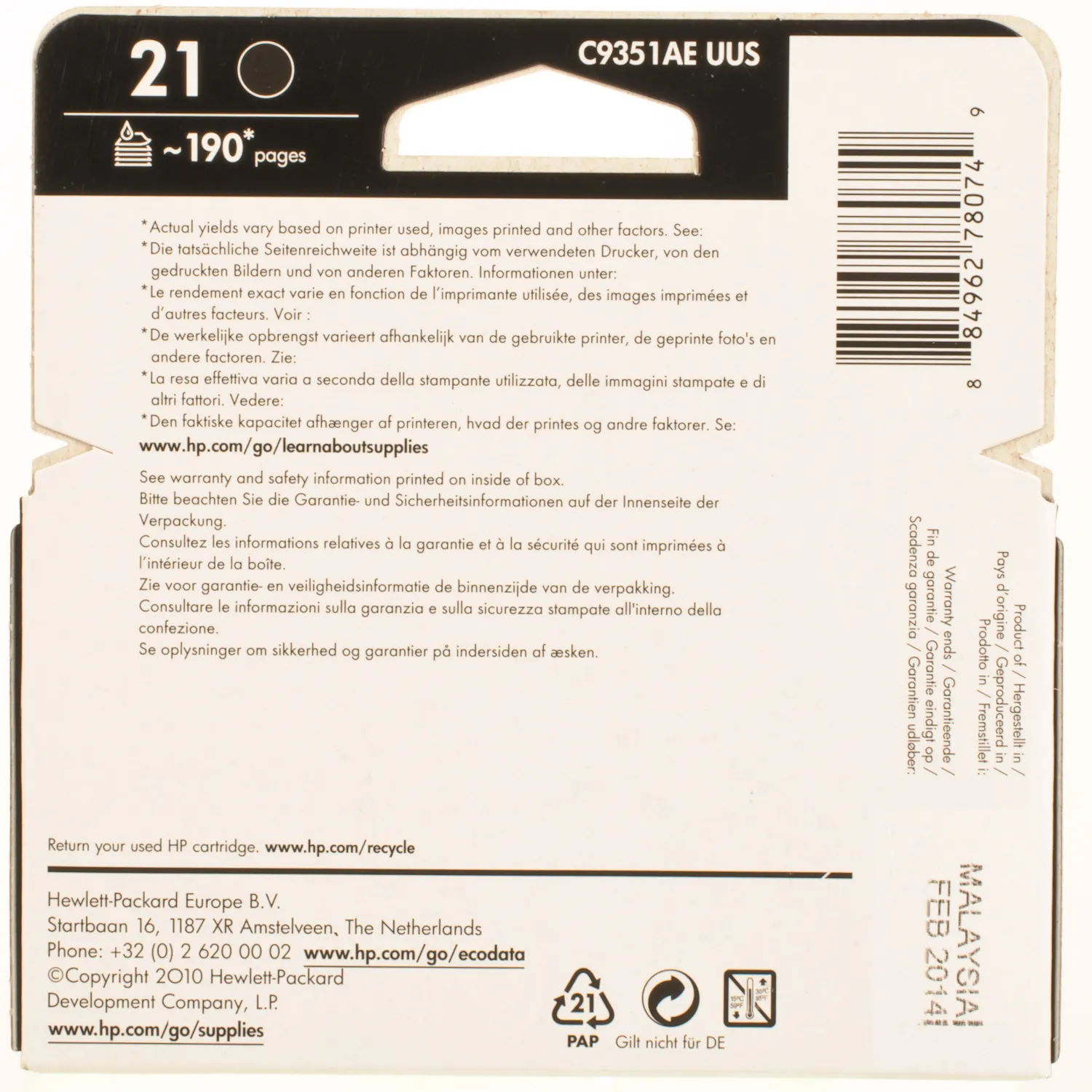 Картридж №21 черный HP (C9351AE) описание: