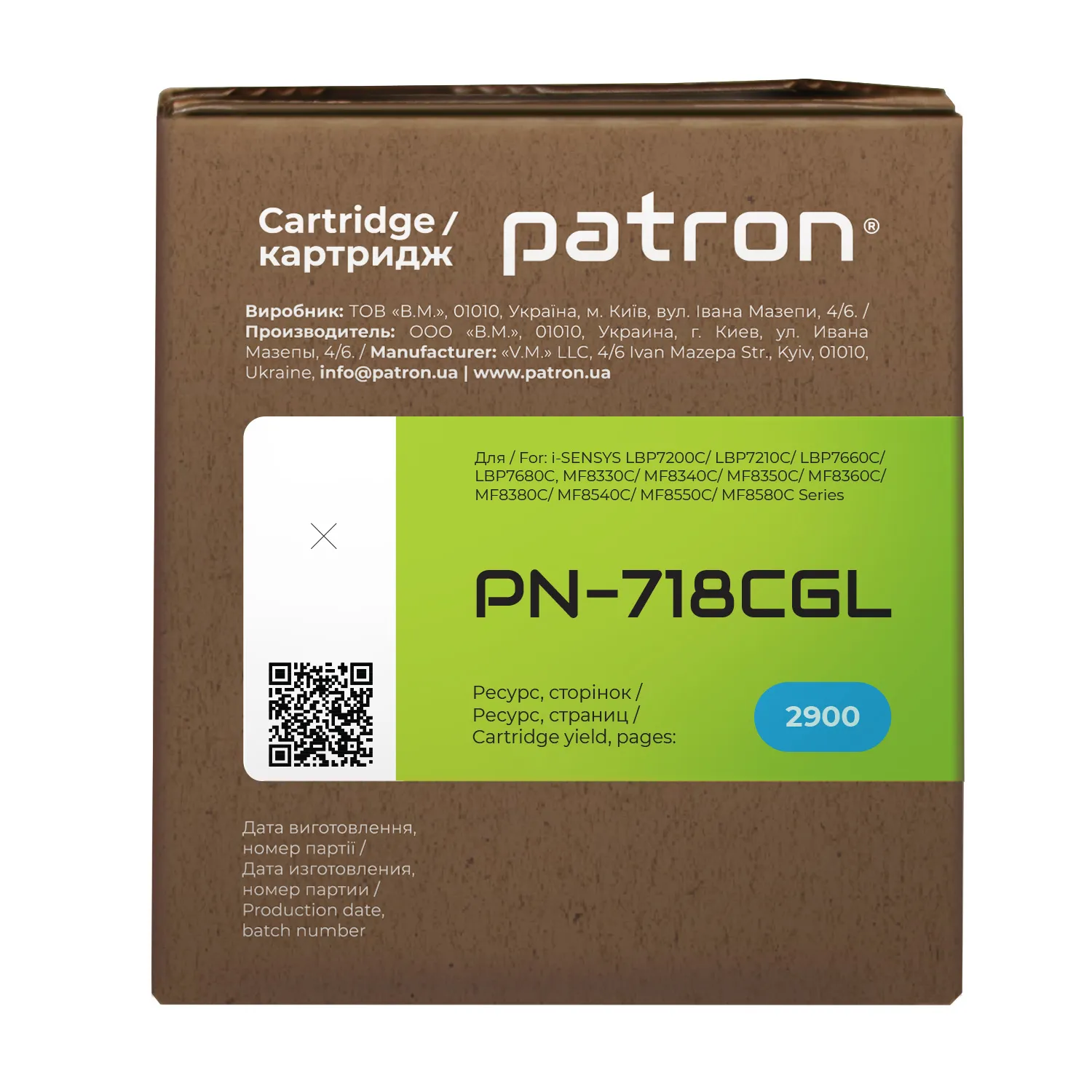 Мы позаботились о том, чтобы упаковка картриджа была не только экологичной, функциональной, имела минимально возможные физические размеры, но и содержала всю необходимую информацию. На зеленой этикетке находится информация о продукте, его совместимости с печатающими устройствами, номер партии, дата изготовления, контакты производителя, а также номер телефона бесплатной горячей линии для украинских потребителей.