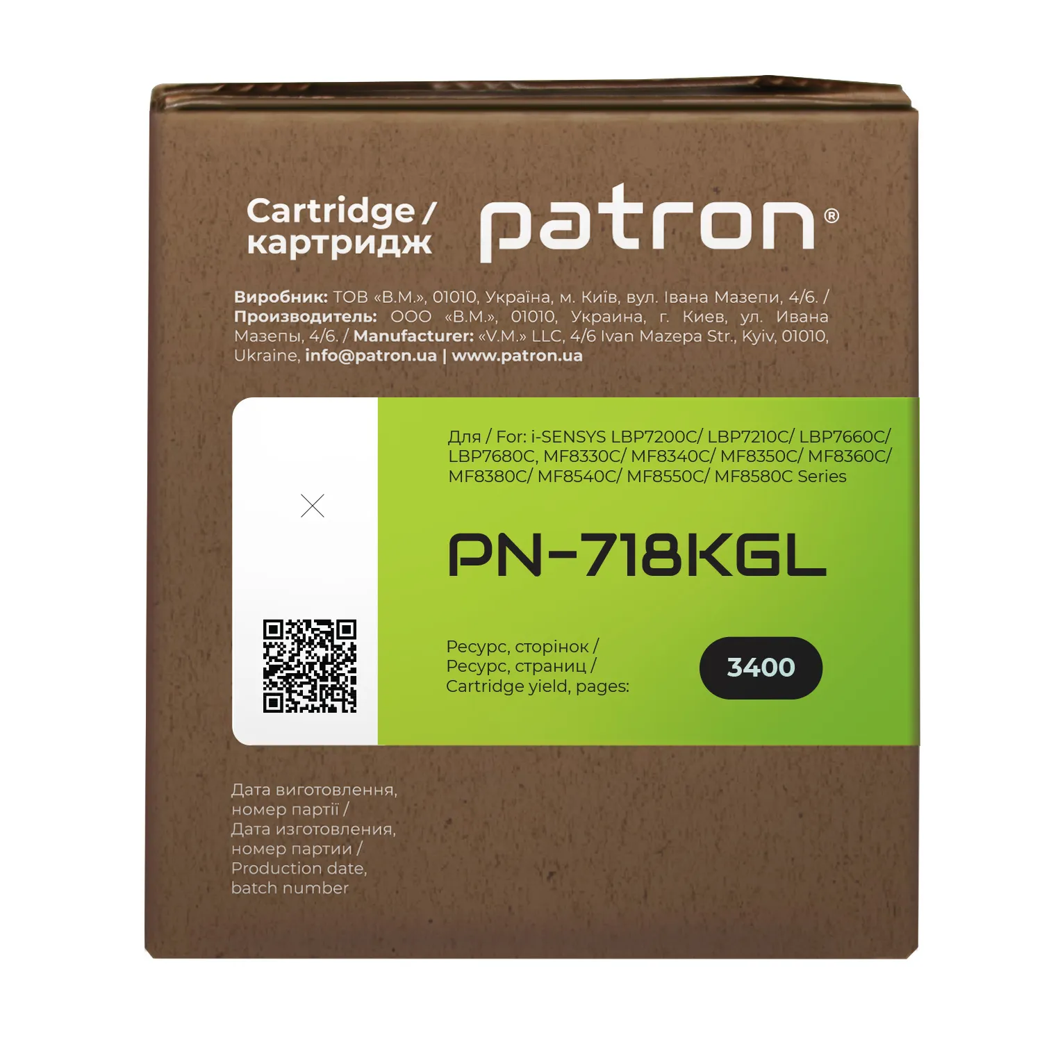 Мы позаботились о том, чтобы упаковка картриджа была не только экологичной, функциональной, имела минимально возможные физические размеры, но и содержала всю необходимую информацию. На зеленой этикетке находится информация о продукте, его совместимости с печатающими устройствами, номер партии, дата изготовления, контакты производителя, а также номер телефона бесплатной горячей линии для украинских потребителей.