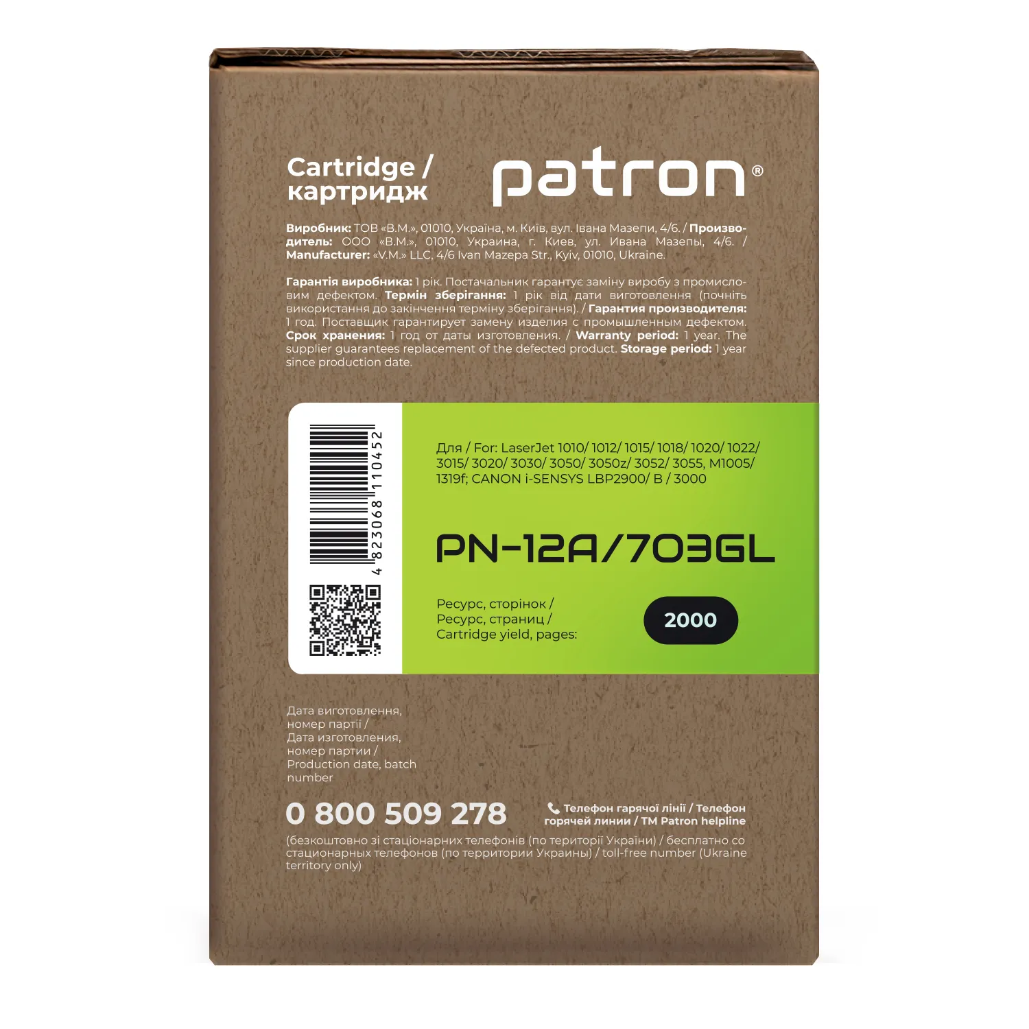 Картридж совместимый HP 12A (Q2612A)/Canon 703 Green Label Patron (PN-12A/703GL) - быстрая консультация по вашему заказу