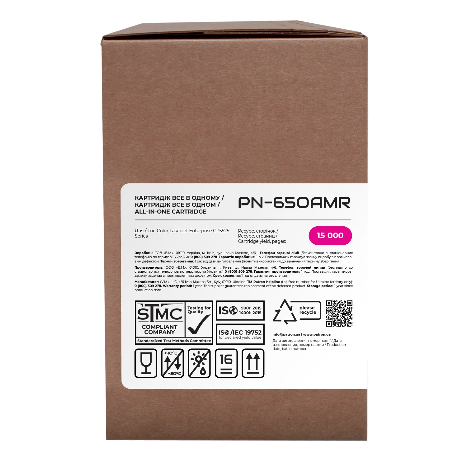 Мы позаботились о том, чтобы упаковка картриджа была не только экологичной, функциональной, имела минимально возможные физические размеры, но и содержала всю необходимую информацию. На ярко-оранжевой этикетке находится информация о продукте, его совместимости с печатающими устройствами, номер партии, дата изготовления, контакты производителя, а также номер телефона бесплатной горячей линии для украинских потребителей.