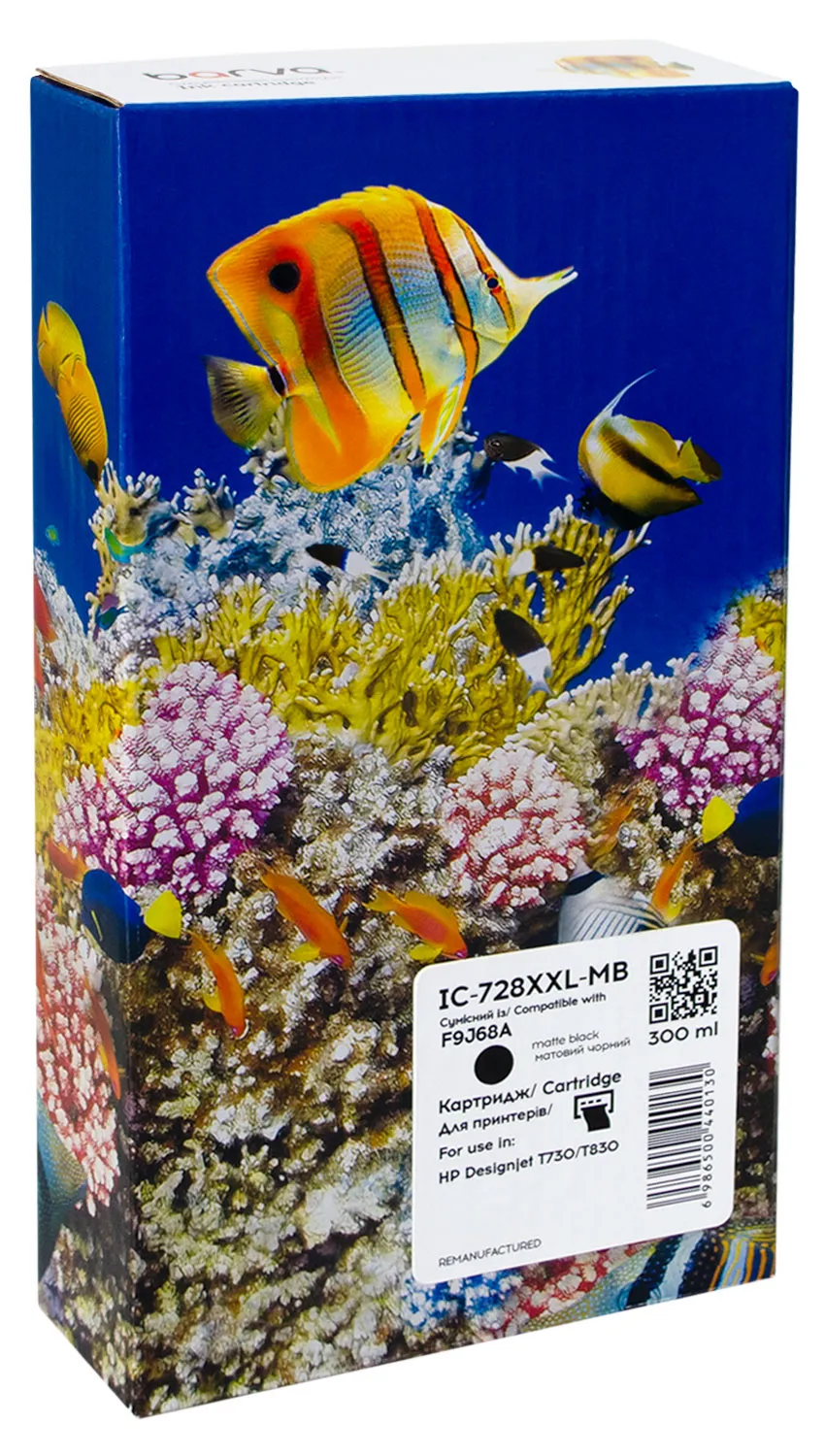 Картридж совместимый HP 728 (F9J68A) версия U1-U30, 300 мл, матовый черный Barva (IC-728XXL-MB), описание: